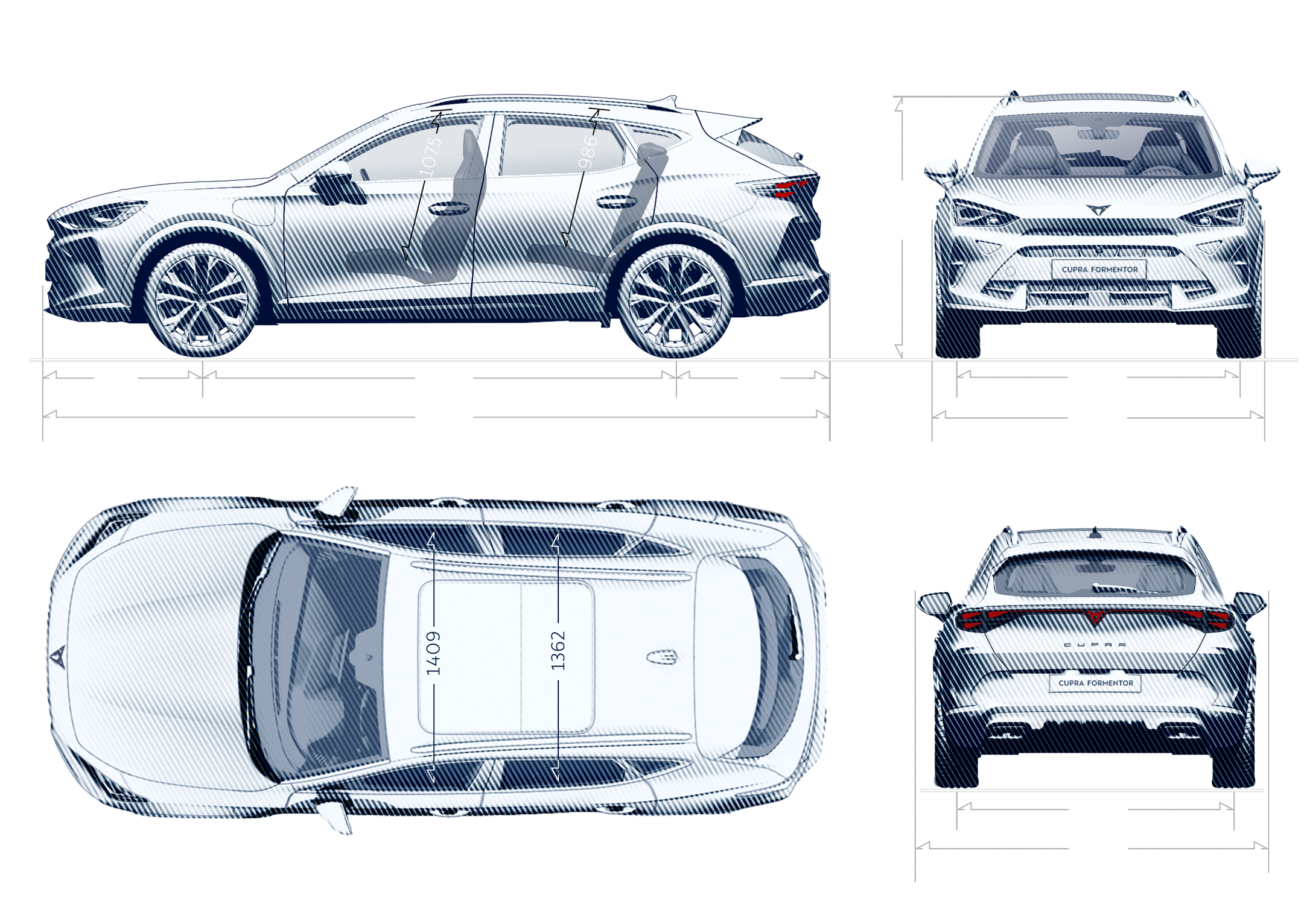 ² The dimensions shown in the image apply to the engine 2.0 TSI 265HP¹ (195kW) 7-Speed DSG (Automatic).